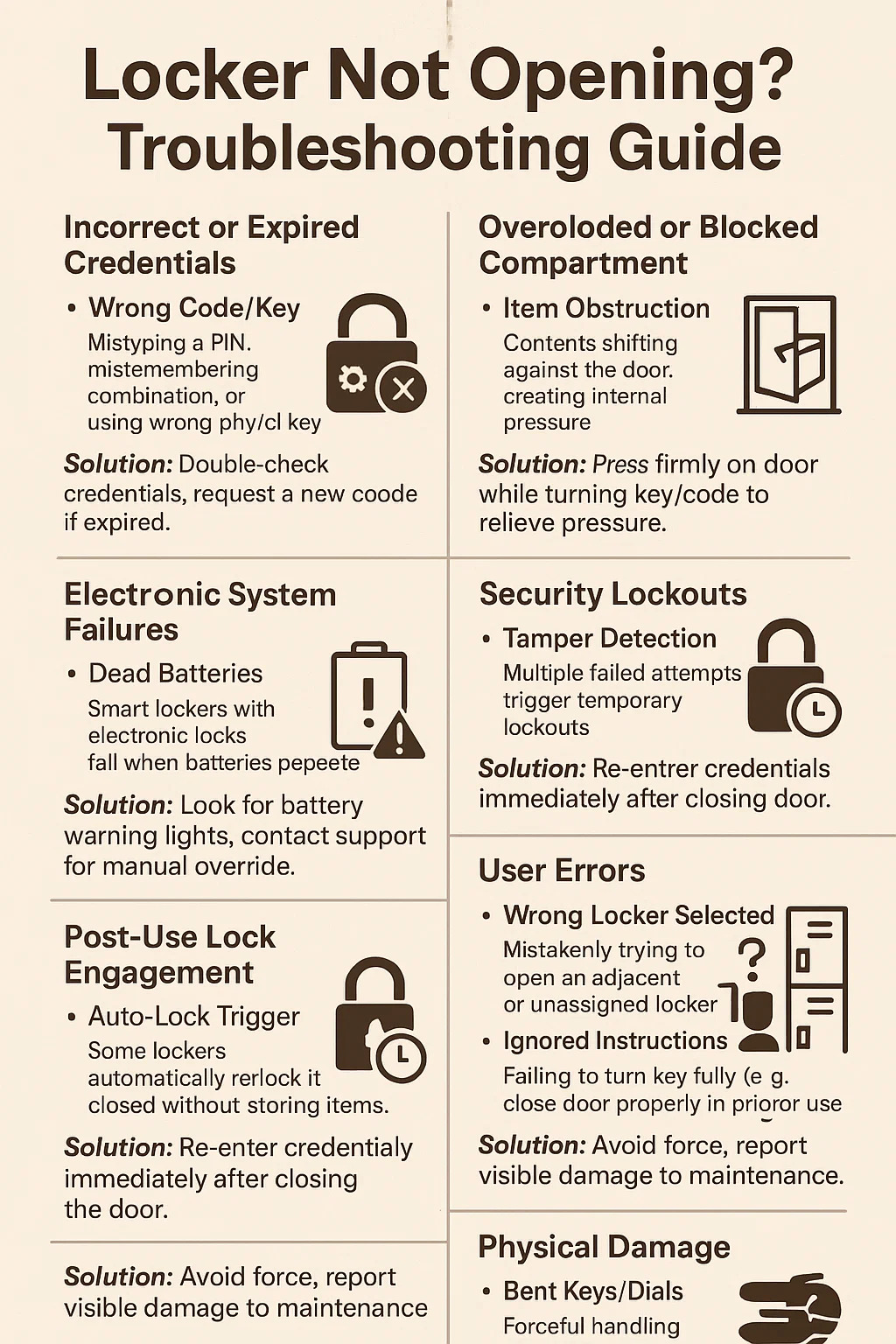 Wybrano niewłaściwą szafkę: omyłkowa próba otwarcia sąsiadującej lub nieprzydzielonej szafki.